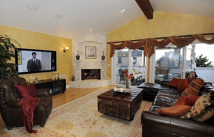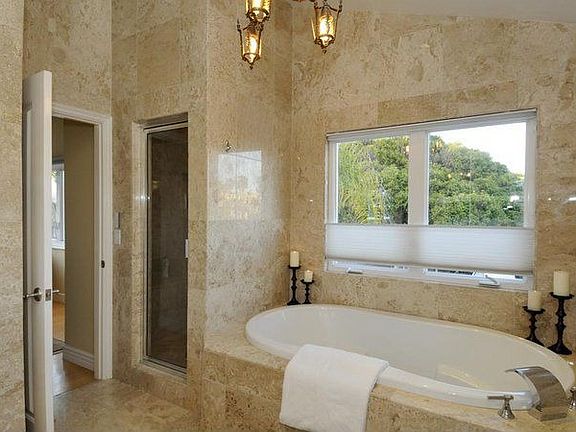 Best sound and video system, gourmet kitchen w/stainless appliances and stone countertops, custom stone work, lighting.