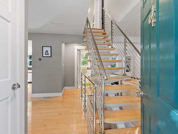 Welcome to 16 Abbot St, where space, setting & style come together. A striking cable-railed staircase & gleaming hardwood floors connect the open kitchen, dining & living room. The kitchen features abundant storage, center island, new stainless appliances, oversized sink & updated lighting. A vaulted mudroom with skylights leads to a deck & pergola overlooking a level 1-acre yard with mature trees & wooded privacy. Upstairs, spacious bedrooms with mini-splits share a recently updated full bath; another full bath is on the first floor. Recent updates include HE furnace, mini-splits, windows, EPDM roof sections, repointed foundation/chimney, & smart outlets. A 1,699 sq ft HEATED AUXILIARY BUILDING offers oversized bay doors, loft, 1/2 bath, & dedicated electric panel—perfect for a home business, gym, guest space or RV/boat storage. Conveniently close to 4 award-winning schools, Forge Pond, Mill Works, trails, dining & shopping.