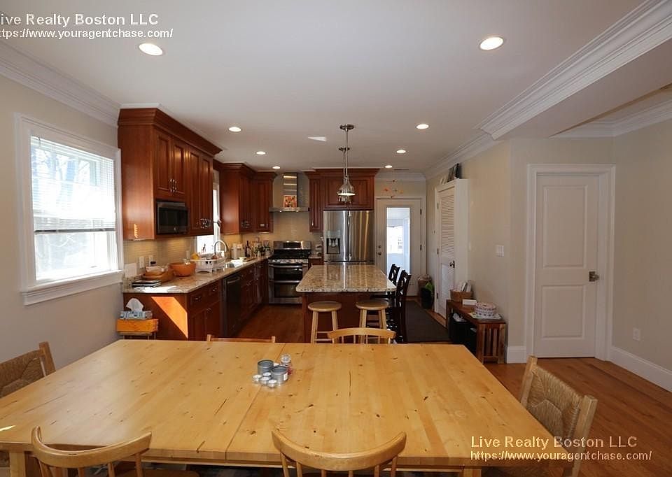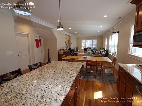 Exquisite 4 Bed 2.5 Bath located in the heart of Brookline available 07/01/2017. Breathtaking unit offers beautiful Hardwood Floors, Crown Molding, Recessed Lighting with extra large rooms and your own private deck! Cable and Internet ready. Spacious Modern Kitchen offers Stainless Steel Appliances, Granite Counters and lots of work area and cabinet space. Washer/Dryer in unit. Garage Parking for 1 is available as well as outdoor parking and unit is steps to Green Line and many other MBTA transit options. Tons of restaurants and shops are also seconds away.