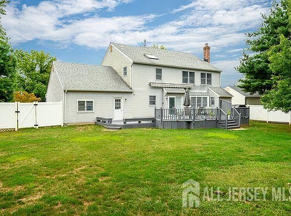 EAST FACING 5 bedroom center hall colonial in highly desirable Timber Ponds neighborhood. This large inviting home backs to Veterans Park which is easily accessed by an additional gate in the fully fenced in yard. A two tiered deck provides ample space for entertaining. Kitchen and bathrooms have been remodeled. Kitchen features custom Brookhaven cabinets with quartz countertops and stainless steel appliances. Large Family Room features wood burning fireplace and wet bar. Main bathroom also has a quartz countertop and custom vanity with double sink. Beautiful primary bath boasts two separate custom vanities with granite countertops and built in makeup area. A jacuzzi style tub is great for relaxing. The finished basement offers a possible 6th bedroom or home office and a very large living area with multiple closets. Conveniently located near major highways, shopping, restaurants, and public transportation. Not to mention South Brunswick's Blue Ribbon schools. Don't miss this opportunity!