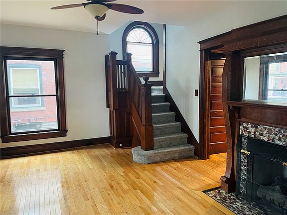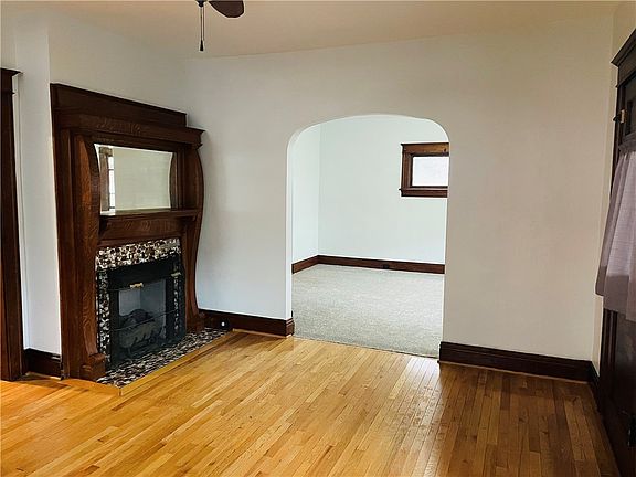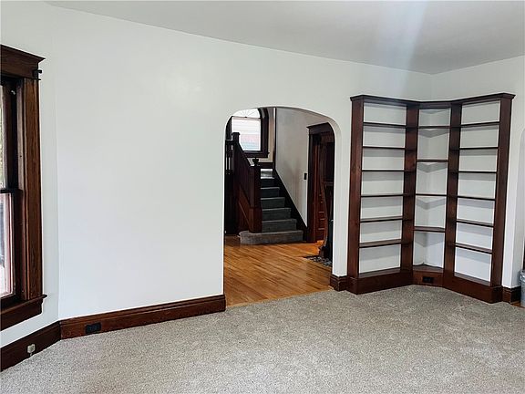 Charming 4 bedroom, 1.5 bath home with detached garage and large partially fenced yard! Exquisite woodwork and hardwood flooring throughout. Large foyer features stunning staircase, decorative fireplace, arched doorways and leaded glass. Spacious living room with built in book shelves leads to formal dining room. Open kitchen with walk in pantry and a half bathroom adjacent complete the first floor. Upstairs are 4 bedrooms and a full bathroom. Full walk up attic could be converted to more living space along with the partially finished basement. Updated electric throughout with fresh carpets and paint. Fenced back yard with nice sized deck and detached garage.