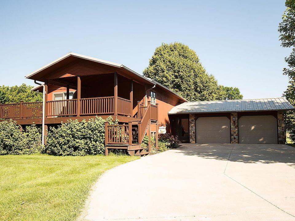 Open floor plan, oak kitchen, living room, 2 bedrooms, full bath and a covered trex deck above. Family room with bar, pool table, gas fireplace, one bedroom and 3/4 bath below. The garage is 5 car with a two car attached facing Alexander Road and a 3 car attached facing N 7th St. The 3 car portion is insulated. Elbow room, a great lot in a great neighborhood and room for all your toys.