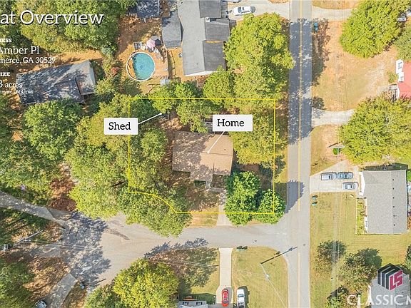 Charming 3 bedroom, 2 bathroom home located near the heart of downtown Commerce and conveniently located to hwy 441 and the SK Battery plant. Nestled amongst the trees for peace and privacy but close enough to all of the conveniences Commerce offers. With neutral colors and laminate flooring mostly throughout, this home is move in ready for you and your family. A Spacious laundry room can be found just off the kitchen. Large storage shed is located on the property for plenty of storage.