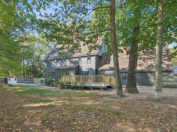 Nestled on a quiet, picturesque street, this recently updated 3-bedroom, 3-bathroom Colonial blends classic charm with thoughtful updates throughout. This home offers generous living spaces, a private backyard oasis, and multiple opportunities for future expansion. The first floor features an inviting eat-in kitchen centered around a cozy pellet stove, two spacious living rooms each with their own wood-burning fireplace, a formal dining room, and a full bathroom. Upstairs, you'll find a large primary bedroom with an en suite bath and walk-in closet, along with two additional bedrooms, a full bathroom, and a designated laundry area that leads to unfinished space above the garage, perfect for a future home office, gym, or studio. The third floor is fully framed and ready for your vision, whether that's a bonus room, guest suite, or playroom. A partially finished basement offers additional living space and the unfinished area offers plenty of storage. Outside, the fully fenced backyard provides a private, serene retreat perfect for outdoor entertaining, gardening, or relaxing by the in-ground pool. Since purchase, the home has seen extensive updates including new siding, windows, and a back deck. New flooring has been installed in the first-floor bathroom, kitchen, second-floor bedrooms, and hallways. All bathrooms were updated with new tubs and vanities, and the entire home was freshly painted. The garage door and lift, as well as all exterior doors, were replaced. Move-in ready with all major updates complete, this home combines timeless character, modern updates, and flexible living options in one truly desirable setting.