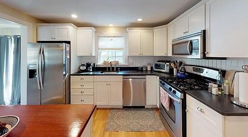 Look no more! This exceptionally maintained 3 bedroom, 2 full baths Cape style home is boasting with features throughout. The main floor offers a perfect flow from the generous living room with fireplace, to the newly updated kitchen with granite countertops and stainless steel appliances that connects to the formal dinning room and the first floor bedroom used as an office. The vestibule opens to a beautiful patio which overlooks a professionally landscaped, leveled and fenced back yard. The second floor offers two generous bedrooms with ample closet space and a full, newly remodeled bathroom. The finished, fully carpeted lower level offers a large family room with fireplace, exercise nook and an office space, plus laundry and utility rooms. With gleaming hardwood floors and freshly painted throughout, Hunter Douglas shades, a brand NEW roof (2019), town water, town sewer, gas heating and central air conditioning, this home is move in ready!