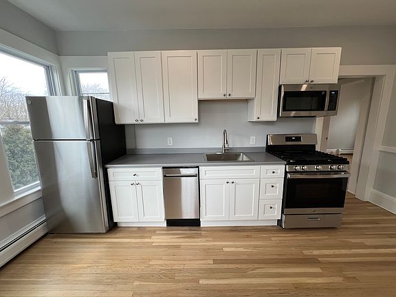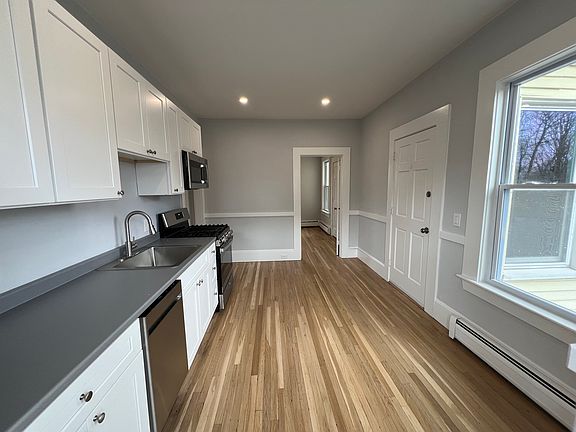 Just Remodeled 2 bedroom with Private Garage and additional off street parking FANTASTIC LOCATION! 16 Ash St #3 In Danvers is located steps form the heart of DANVERS main attractions of restaurants and shopping. Easy access to all major routes. The apartment is on the second floor and is a 2 bedroom 1 bath with living room/dining room and an eat in kitchen. There are freshly refinished hardwood floors throughout, fresh paint, new kitchen and brand new bathroom. High ceilings gives this bright and sunny space a very open feel. Parking for 2 Cars and has a 1 car Garage. No pets/No smoking. There is coin operated laundry in the basement. 1 year lease, due at signing: 1st months rent, last months rent & security deposit $1500- Available June 15th