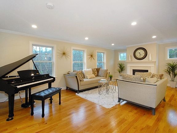 Charming contemporary cape built in 2019. This spacious home boasts an open floor plan & an incredible value for its stylish features. The entrance leads to a bright/large open concept living room w/natural light & gas log fireplace, perfect for entertaining. Opening to a classic white kitchen w/quartz countertops, Bosch stainless appliances, and a dinette area leading to a Trex deck, the 1st level includes a full bath, study, family room and hardwood floors. The 2nd level features a large primary suite with plush private bath, walk-in closet, 2 additional bedrooms sharing a bath with dual sinks & quartz countertops. The well-located, 2nd-floor walk-in laundry room provides added ease. The finished basement w/wide plank flooring is perfect for a playroom or remote work with easy access from the heated 2-car garage. This well-built home has high end finishes, is centrally located in a neighborhood of newer homes, & walking distance to the newly renovated Sudbury Parks & Rec Center