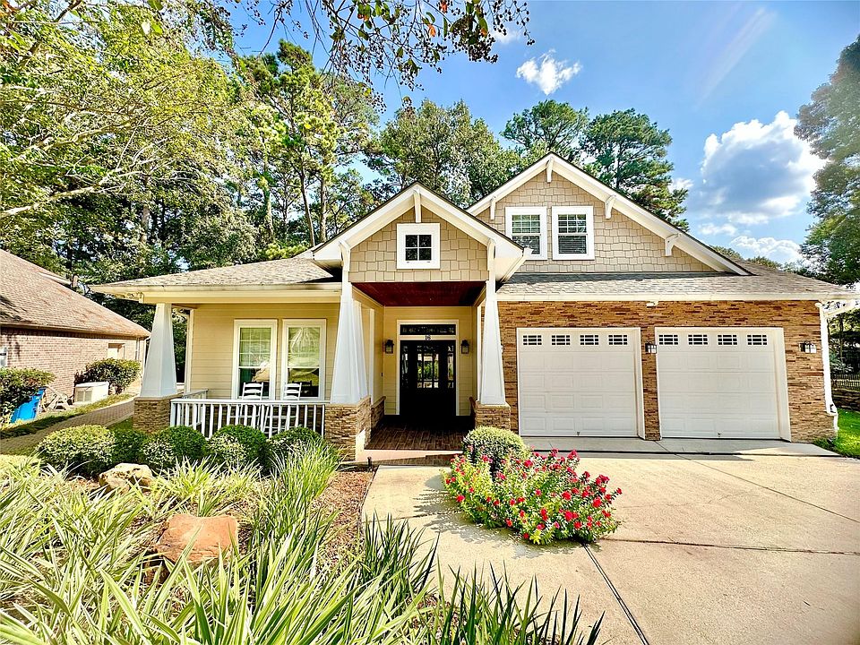 This GORGEOUS 1.5 story "custom" GOLF COURSE home exudes true "Southern Living" charm & refined QUALITY throughout! Located on a cul-de-sac overlooking nature, a distant pond & no neighbors directly behind, this meticulously cared-for home features tall ceilings, spacious & open floorplan, wood floors, crown moldings, solid-wood doors/cabinetry/woodwork, & lots of natural light throughout. The large "dine-in" CHEF'S KITCHEN, spacious living room w/gas log fireplace, & comfortable primary-suite provides all the luxuries & comforts of lake resort living. With 3 BEDROOMS & 2 full baths DOWNSTAIRS, this home truly lives as a 1-story... plus a large "Bonus Space", kitchenette, & full bath UPSTAIRS (perfect for 4th bedroom, home office, or gameroom). Enjoy STORAGE galore w/abundant closets, built-in cabinetry throughout, & a HUGE floored "Texas Basement" upstairs for more storage or future expansion needs. 24K Generator * Newly replaced main AC & upstairs AC * Montgomery ISD * 1.62% TAXES!