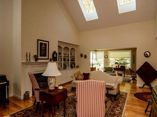 Welcome to a very well-maintained unit in Orchard Hill, a premier active 55+ adult community. This upgraded unit has shining hardwoods throughout the 1st floor - living room, dining room, kitchen, sunroom - that all look like new. The bright skylit vaulted ceiling living room has a gas fireplace and impressive built-ins with detailed millwork. The modern kitchen, complete with breakfast bar, has beautiful granite counters and upgraded cabinetry. Relax in your cathedral ceiling sunroom which brings in more sunshine. Both bedrooms - Master on 1st floor and 2nd floor bedroom - are good sized with full baths. The 1st floor Master has a big walk-in closet. The loft area can be a family room or your choice of multiple possibilities. You will be pleasantly surprised by the amount of closet/storage space, including a full expansive basement that can be finished. Neutral colors - all ready to move in and enjoy. If you desire, the Clubhouse offers many resident activities.