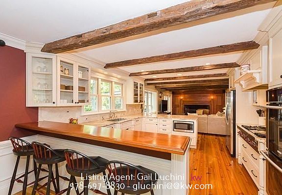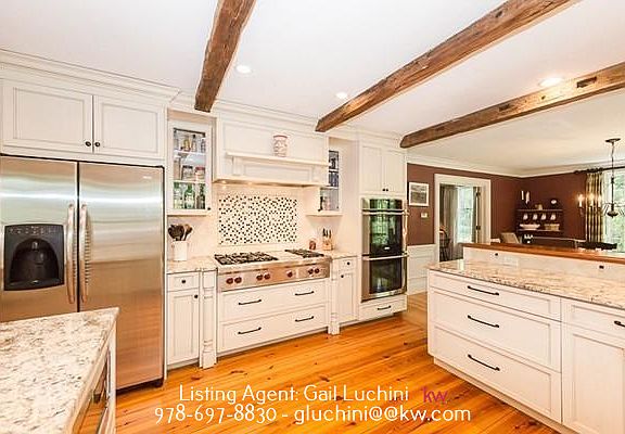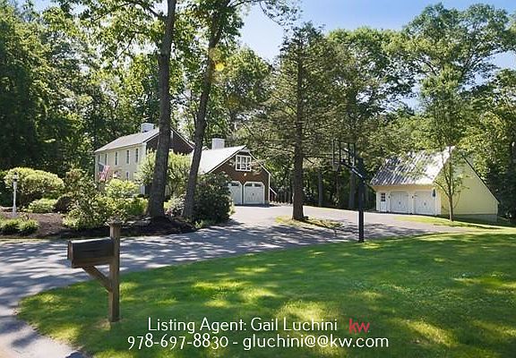 Coveted East Boxford Olde Farms location for this updated sprawling colonial that provides seemingly endless living space. Elegant fireplaced living room with French doors opens to the formal dining area with detailed wainscoting. Dream kitchen has room for 2 cooks featuring 6 burner stove, 2 breakfast bars, Stainless Steel appliances, extraordinary cabinet space, and exposed beam ceiling. Seamlessly flow into the family room with gorgeous floor to ceiling cherry surround fireplace & exterior access to the screened porch & deck. Second floor boasts a master suite with master bath and his-and-hers closets. Additional 3 bedrooms and 1.5 baths on the 2nd floor gives everyone room to get ready in the morning. Finished basement has a game room and yet another family room. And THE POND!! This hidden gem allows for ice skating and pond hockey! Separate barn houses 2 additional cars and huge 2nd floor area ready for your ideas - possibly a studio or office?
