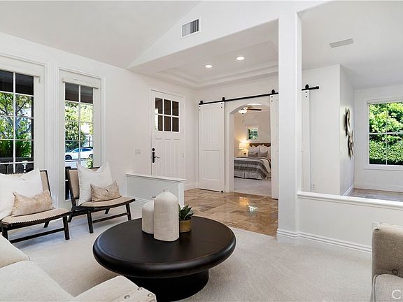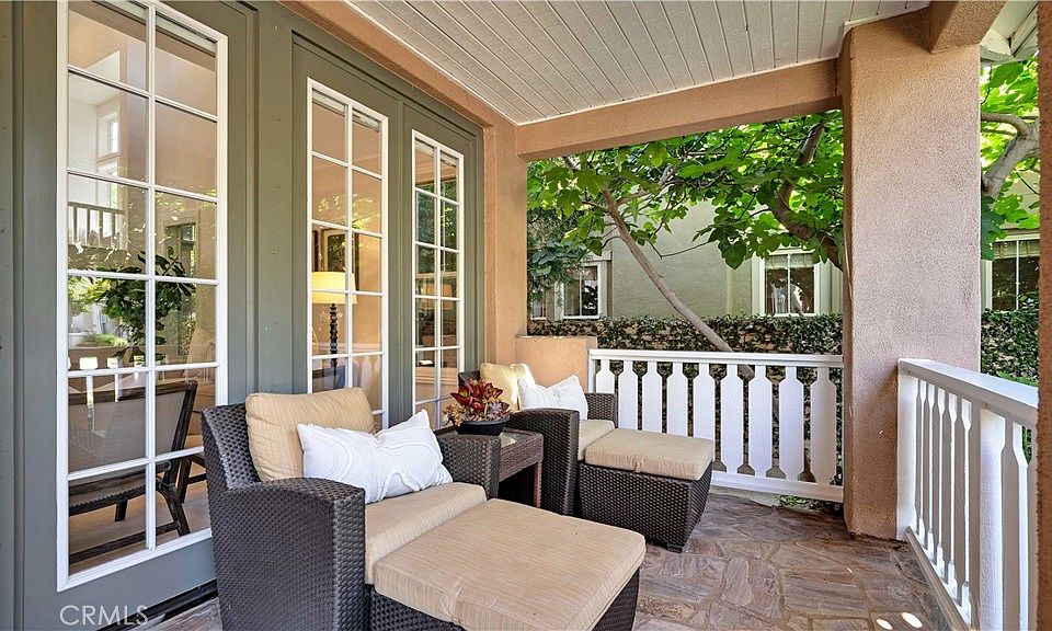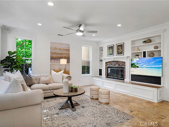 What a buy! Location, Condition, and Prestige! This home is located in Northwood Pointe in the luxury area of Mayfield within the Trailwood Neighborhood and ideally positioned on a peaceful cul-de-sac, this must see offers luxury living in one of Irvine’s most sought-after communities. A charming stone path leads you to a covered front porch, setting the stage for the beautifully upgraded interior. Step inside to the elegant tile flooring, and abundant natural light that fills the spacious living room. The formal dining area is accented by expansive windows and boasts an open concept, perfect for hosting memorable gatherings. A spacious downstairs bedroom with sliding barn doors and a full ensuite bath, complete with granite counters and a walk-in shower, offering ideal privacy for guests or multigenerational living. The open-concept family room features a cozy gas fireplace with stacked-stone surround and custom built-in bookshelves. It flows seamlessly into the chef’s kitchen, which boasts a large center island, rich mahogany cabinets, stainless steel appliances including a Sub-Zero refrigerator, Thermador stove and oven, pendant lighting, a sunny breakfast nook, and a butler’s pantry with wine fridge and bar area. Step outside to your private backyard oasis—meticulously landscaped and perfect for entertaining. Enjoy the stone patio, tranquil water fountain, built-in BBQ, fire pit, and private spa under the stars. Upstairs, a cozy landing with a built-in window seat leads to a versatile bonus/flex space, two secondary bedrooms with mirrored closets, and a full bath featuring dual sinks and upgraded finishes. The expansive primary suite is a true retreat with vaulted ceilings, a private balcony, walk-in closet, and a spa-inspired bath with soaking tub and walk-in shower. Additional highlights include a 3-car garage, porte cochere driveway, and walking distance to the community pool and amenities, as well award-winning schools, parks, and scenic trails. Build amazing ENJOYMENT VALUE in this amazing home and enjoy all that Northwood Pointe has to offer.