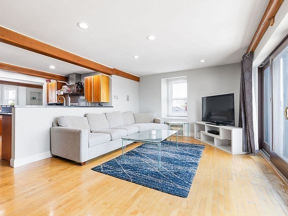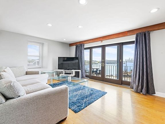 Experience luxury living in this stunning south-facing, corner penthouse located in Chelsea’s sought-after waterfront district. This spacious home features exposed brick, recessed lighting, abundant natural light, and a slider to your own private balcony with unobstructed views of the Boston skyline and harbor. The open-concept kitchen is equipped with premium stainless steel appliances and sleek black stone countertops. Architectural details include exposed beams and hardwood flooring, blending character with modern finishes. The spacious bedroom features a wood stove, beautiful built-ins, and a bow window. Massport windows and sliders. 1 parking space (#5), storage in basement. Pet-friendly building. Easy access to downtown Boston, major highways, and the MBTA. Across the street, Polonia Park will be renovated into a new dog park this year. Also nearby is the Mary O’Mally park with walking/jogging paths along the water. Don’t miss this rare opportunity to own this premier penthouse!