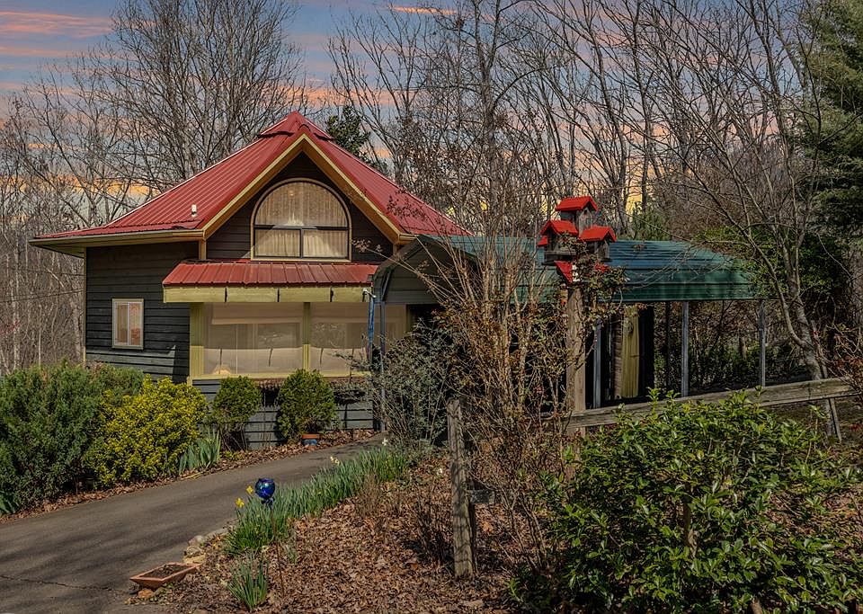 Whimsical Cabin in quaint & quiet gated community boasts character galore....this lovely 3 bedroom/ 2 bath cottage is nestled among towering hardwood canopy, yet boasts easy, level entry from circle drive in gated rustic community.... near end of road privacy with two covered parking areas as well as a third asphalt driveway...inviting courtyard & outdoor areas to enjoy the mountain views, bright & well thought-out layout, newly updated interior features warm stone fireplace, spacious bedroom & bath on main & sprawling loft bedroom, guest quarters in terrace level lead to covered patio, super storage & utility room, large closets, new appliances & plentiful cabinetry with large island in kitchen than overlooks keeping room and great/dining room areas with vaulted ceilings promote "open feel", welcoming sunroom, large shed, lush natural landscape, short distance from historic downtown Ellijay, very well maintained, all paved roads for easy access, close to hiking/biking trails, lake, river & more...great weekend getaway or full time home, no vacation rentals promote assured privacy & enjoymenta must see!