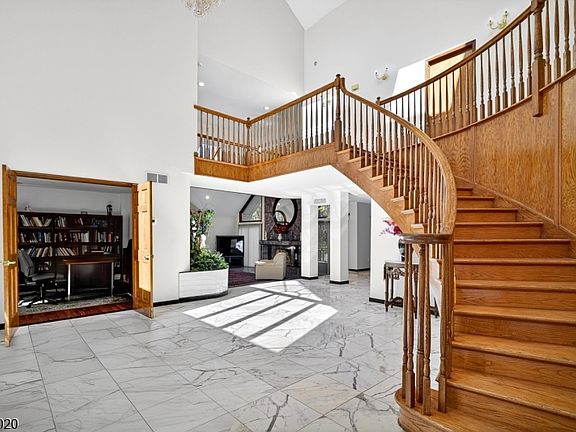 Elegance and comfort define this custom-finished contemporary Colonial clad in striking White Belgian Brick. Privately set on 1.92 picturesque acres, the property features an estate-quality Jerith fence, stately gates, and Bluestone front steps that enhance its curb appeal. The park-like backyard offers mature trees, open lawn, and a Trex deck leading to a charming gazebo-perfect for gatherings and outdoor entertaining.Graceful statues welcome guests inside, where a sculptural curved staircase, European chandelier, and marble and granite floors set an elegant tone. The home includes a distinguished library, a kitchen with a large island and a generous pantry, a formal dining room, and a grand living room with vaulted ceiling, skylight, and floor-to-ceiling ceramic-tile fireplace. The family room with a second fireplace adjoins a sunroom illuminated by six skylights, offering year-round light and warmth.Upstairs, hardwood hallways lead to four spacious bedrooms with custom closets and private balconies. The main suite impresses with oversized skylights, a fireplace, and a luxurious bathwith soaking tub and separate shower. With twelve skylights and three fireplaces throughout, the home radiates natural light and warmth.A finished multi-room basement adds versatile living space. Located in desirable Rosedale Acres, residents enjoy scenic walking trails and proximity top downtown Princeton-midway between NYC and Philadelphia.