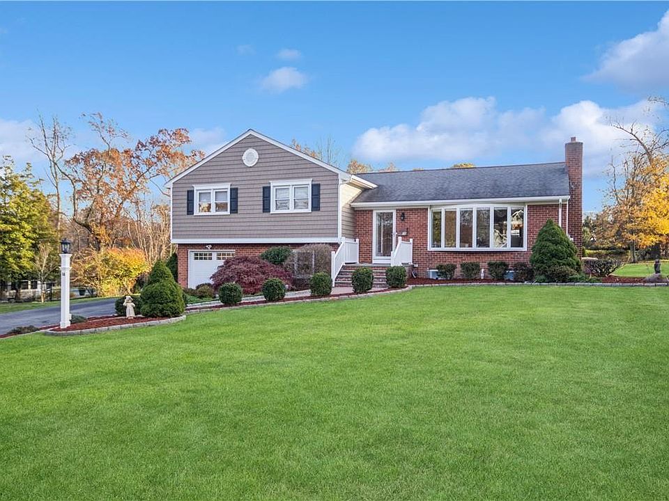 Welcome to this spectacular and expanded sun-filled split level home that is impeccable. This home has been renovated to perfection with attention to detail. This gem sits on 0.93 of a corner acre in the sought after Stonegate area. Over-sized living room with gleaming hardwood flooring and bay window flowing right into the large dining area and family room makes it perfect for entertaining and family gatherings. The custom kitchen includes quartz counters, farm sink and stainless steel appliances. The highlight of this home is this spectacular family room with cathedral ceilings with 3 walls of windows and slider door out to deck overlooking the park-like grounds. The second floor is comprised of a gorgeous hall bath, three generously proportioned bedrooms, large master bedroom with luxurious bathroom en suite. The lower level boasts recreation area, door to 1 car garage, wet bar with granite counters and stainless steel refrigerator, stunning full bath and door out to patio area. The heated sub-basement level features laundry, gym, mechanicals & enormous storage capacity. New roof 2016, new vinyl cedar shake siding 2019 and front walkway 2019. Commuter’s delight, near shopping, Metro North, major highways and restaurants. This home is not to be missed. Additional Information: ParkingFeatures:1 Car Attached,