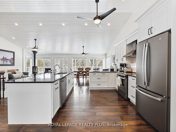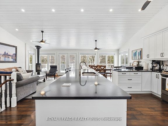 Fully renovated home offering breathtaking water views and luxurious living. The main floor features an open-concept layout with floor-to-ceiling windows, a full-length terrace, a modern kitchen with stainless steel appliances, pot lights throughout, and a spacious primary bedroom with a stunning ensuite and direct walkout to the terrace. The ground-level lower floor offers a full walkout, floor-to-ceiling windows, a sauna, a cozy fireplace, and a large den that can easily be converted into a fourth bedroom. The front yard includes a two car garage, a private driveway accommodating 1016 vehicles, and an additional workshop with potential to convert into a summer house. The backyard is large, private, and surrounded by mature trees, creating a peaceful retreat. Conveniently located near Highway 407 and top-rated schools, this property combines elegance, privacy, and accessibility in a highly sought-after setting.