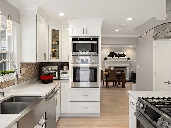 Welcome to this charmingly renovated home in Newton that offers an exceptional blend of classic design and sophisticated living area. The elegantly renovated open-concept kitchen offers quartz countertops, center island, SS Bosch appliances and an informal dining area. The welcoming living room flows seamlessly to the dining room with the centerpiece fireplace that sets the mood. Completing the first floor is a half bath and a sunroom with French doors connecting to the back yard. Second floor features a master suite with a private bathroom, another two good sized bedrooms and a full bathroom. Third floor offers one bedroom and an office. The spacious finished lower level is ideal for relaxation and entertainment with a serene reading corner or playroom, a home theater and a half bath. Stepping outside to a manicured yard and outdoor space, the large patio is perfect for summer gatherings. TWO CAR GARAGE. Close to Newton North, Cabot School, Commuter Rail and more