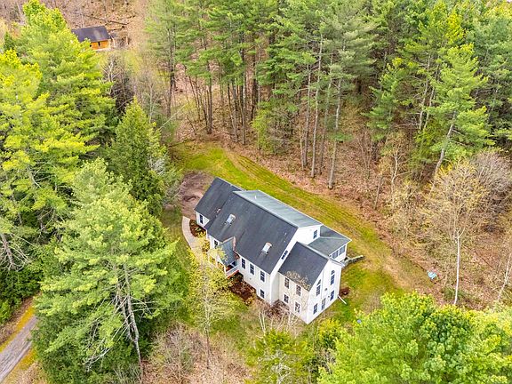 Charming 3-bedroom, 4-bath Cape-style home set on nearly 2.5 private acres on a quiet, private road. This inviting home is full of character, featuring arched doorways, high ceilings, and abundant natural light throughout. The large kitchen offers an oversized center island, perfect for cooking, entertaining, or gathering with family. The spacious primary bedroom includes a ¾ en suite bath with a glass shower, while two additional well-sized bedrooms provide space for guests, family, or home office needs. A partially finished walkout basement adds flexible living space, ideal for a rec room, gym, or studio. Enjoy the peaceful wooded surroundings from the three-season porch or step out onto the beautiful flagstone patio for outdoor dining or relaxation. Mature trees offer privacy and a natural buffer, making the property feel like a secluded retreat. Located just minutes from I-89, the home offers the best of both quiet living and commuter convenience. A rare find combining charm, functionality, and a desirable location.