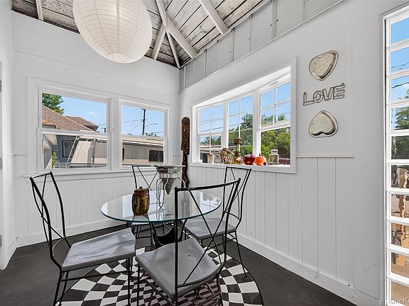 Sitting on a tidy, fenced property – steps from a breathtaking lake – this energy-efficient home is convenient to shopping and transportation. Recently renovated inside and out, this unique residence features a large windowed sunroom in the front with a vaulted ceiling and exposed rafter beams. A large screened-in deck at the rear makes this home perfect for summer entertaining.