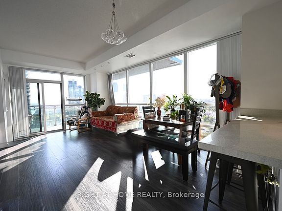 This beautifully appointed 1-bedroom condo high above the city captures sweeping vistas of Lake Ontario from a coveted corner suite and open balcony on the 23rd floor. Perfectly positioned just moments from the tranquil Lake Shore waterfront, residents enjoy instant access to scenic walking and cycling trails, while a wealth of transit options nearby makes travel effortless and efficient. Step inside to find airy, open-concept living and dining areas, bathed in natural light and showcasing a sleek, modern design ideally suited for both unwinding after a busy day and entertaining guests. Enjoy premium amenities including a fully equipped fitness centre and an elegant party room for social gatherings.Set within one of Etobicoke's most desirable waterfront neighbourhoods, this rental promises a blend of relaxation, convenience, and urban lifestyle making it a truly exceptional opportunity for those seeking lakeside living with city access.