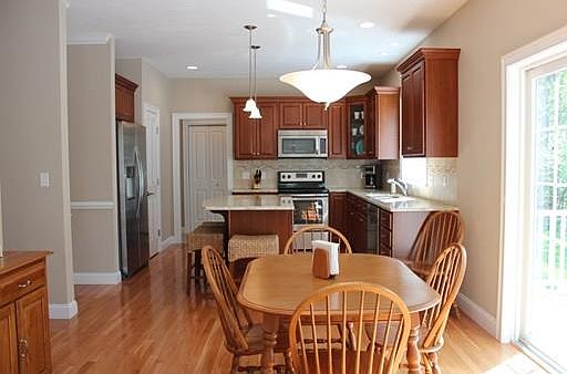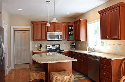 - Kit Dscrp: Flooring - Hardwood, Countertops - Stone/Granite/Solid, Cabinets - Upgraded, Deck - Exterior, Kitchen Island, Stainless Steel Appliances