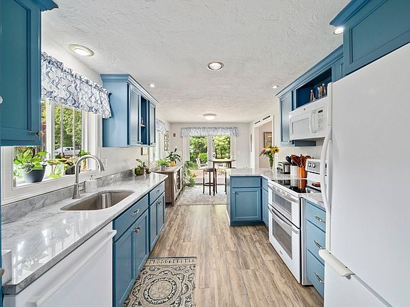 Welcome to 16 Bruce Rd. This beautifully maintained multi-level home, set on a serene and private half-acre flat lot in West Plymouth. Featuring 3 spacious bedrooms and 1.5 baths, this property blends comfort and character. The main bedroom impresses with a soaring cathedral ceiling, and a Juliet balcony offers the perfect spot to enjoy your morning coffee. The updated kitchen features rich blue cabinetry and stone countertops, opening to a back patio ideal for entertaining. The cozy living room is warmed by a pellet stove, creating a inviting atmosphere year-round. An additional family room on the lower level offers flexible living space. Enjoy the manicured gardens, handy storage shed, and lush landscaping that make this property truly special. Perfectly situated minutes from downtown Plymouth, with restaurants, shopping, and all the waterfront has to offer. Welcome to America’s Hometown!