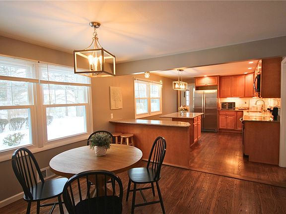 Welcome to this beautifully maintained Pittsford rental offering comfort, space, and an exceptional location. This spacious home features 4 bedrooms, 2 full baths, and 2 half baths, with hardwood floors throughout most of the home and a thoughtfully updated kitchen with quartz countertops, island seating, and included appliances. Multiple living areas provide flexible space for working from home, relaxing, or entertaining, including a generous family room and separate office area. Step outside to enjoy the park-like backyard with mature landscaping, perennial gardens, and multiple patios perfect for outdoor dining or quiet evenings.
