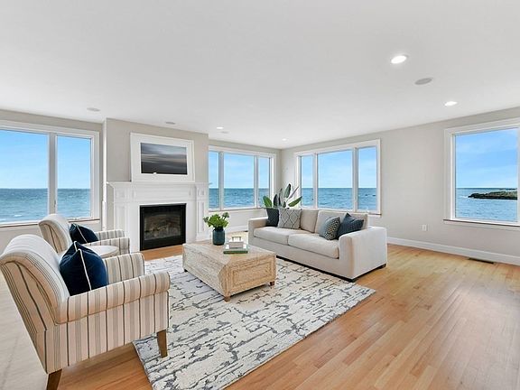 Unparalleled panoramic views of the Atlantic Ocean welcome you at this spectacular waterfront home. Recently built with quality finishes, high ceilings, oversized windows and hardwood floors throughout. This incredible property is conveniently located; steps to Gunrock and Nantasket beaches, just a 5 min drive to the commuter rail, and less than a 10 mins to Downtown Hingham and Cohasset Village. The open and airy first floor is ideal for entertaining with a chef’s kitchen, dining room, and living room with gas fireplace, den, pantry and full bathroom. Expansive decks with glass railings extending your entertainment space outside with uninterrupted views. The second floor is perfectly appointed with a generous primary suite, complete with walk-in-closet and full bath, 2 additional bedrooms, 2nd full bath, and laundry room. The third floor offers additional space to work or play, with two additional bedrooms and full bath, 2 car oversized garage, mudroom, central air, generator.