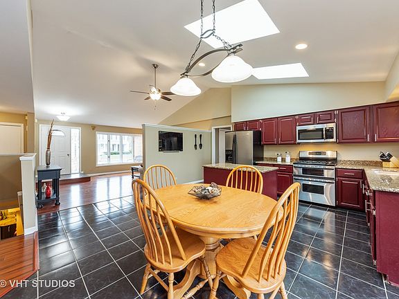 Here is the awesome ranch style home you've been waiting for! Great neighborhood. Very well maintained home features open floor plan, vaulted ceilings, skylights and plenty of natural light throughout. All bedrooms are spacious. Master bedroom suite is large with updated master bath w/ granite and jetted tub! The inviting family room has a beautifully redone fireplace with built in cabinetry. Gleaming wood floors and new carpet in bedrooms. Large kitchen features granite counter tops & stainless steel appliances. Fenced yard features brick paver patio and deck, perfect for summer enjoyment. Huge high end finished basement features entertainment space w/refrig bar area, large separate office space and a ceramic bathroom. Basement is bright and comfortable. Newer windows about 9 yrs. Great area! Great buy!