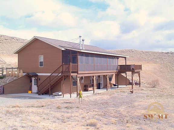 This country home has outstanding views of the Beaverhead Valley. The home is well maintained and move in ready. 3 bedrooms, 3 full baths, office, library, family room and work out room. The property has 2 detached 2 car garages for plenty of storage for vehicles and toys. Large screened in porch looks out over the valley, fenced back yard for animals and plenty of room for horses. No covenants and bordering large ranch in conservation guaranteeing no additional development to the west.