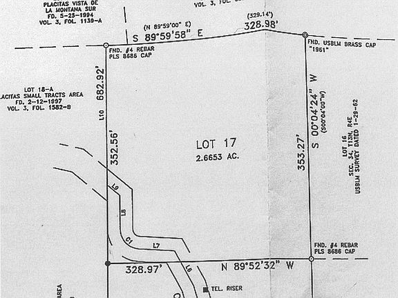 2.6 ACRES! BIG VIEWS! $95,000. Convenient land in the western Placitas; dramatic views of the Sandias, as well as the mesas & city lights. Less than 4 miles from I-25; just a 15 minute drive to Albuquerque! No covenants or HOA, this land could even be easily split into 2 lots. Electric, cable & phone lines in the street. You will need to drill a well, but this is a very good area for water, with nearby wells about 500 feet deep. The land is a mix of ridge and valley. No restrictions on livestock, so horses, chickens & goats, etc, are allowed. Minimal zoning: 1008 sq ft minimum house size, 28 foot max height & 2 car (or larger) garage is required; pitched metal or tile roofs allowed, as well as pueblo style. Less than 1/2 mile off paved (county maintained) road. Close to National Forest!