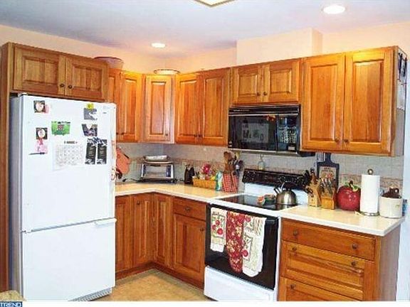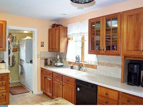 Expanded ranch home with an additional second floor. Majority of living space is on main floor. This attractive location is on almost an acre of property on a cul-de-sac street in a somewhat secluded area not far from, Lambertville, New Hope and Princeton. This home offers 4/5 bedrooms one being used as a office with built in desk, and cabinets. The modern kitchen connected with the formal dining room allowing for an open spacious floor plan. There are new maple cabinets, ceramic tile splash back and ceramic tile flooring. The dining room has hard wood floors, living room and landing has beautiful barn wood flooring. Family room has large fireplace, wood burning stove, picture window and ceiling beams. Upstairs there are two bedrooms, full bath, and access to attic. Master bedroom has cathedral ceiling, skylights, walk in closet, and sliding door entry to deck. Most of the carpeting is newer, and most o home is freshly painted. There is a fish pond, two car garage, screened-in porch, plus a deck.