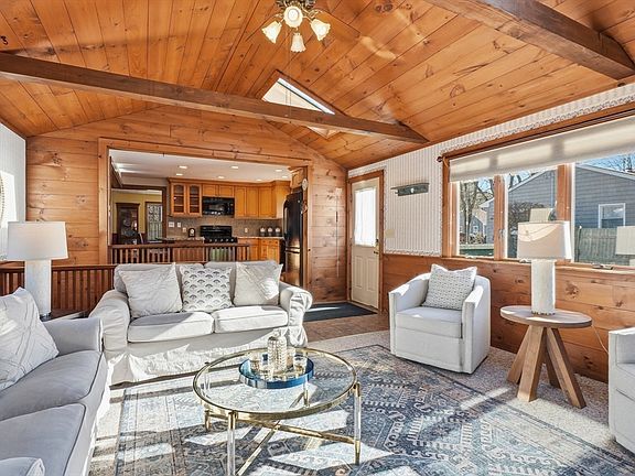 Welcome to this charming six-room open-concept ranch set in a lovely cul-de-sac neighborhood. The heart of the home is the stunning 14'9" x 19' pine-clad cathedral family room, complete with abundant natural light and a warm, inviting feel—perfectly open to the kitchen and dining area for easy everyday living and entertaining. A versatile living room or formal dining room with a fireplace offers additional gathering space. The home features two bedrooms with hardwood floors and a full bath with shower. Step outside for easy access to a large, flat yard, ideal for recreation, gardening, or relaxing. The spacious double driveway accommodates at least 4 vehicles comfortably. Additional highlights include: Brand-new 3-bedroom septic system design in process. Seller to escrow funds if needed for installation at closing. 11kW gas generator, Central A/C. Wood stove in family room. Gas heat and cooking. Finished room in the basement with electric heat. Dedicated laundry room.