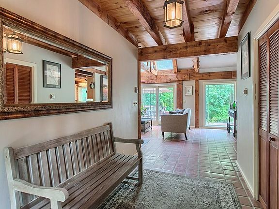 Private, idyllic setting! Nearly six acres of impeccably landscaped grounds & private woodlands surround this fabulous, custom built Post & Beam Contemporary,filled with country ambience. Enjoy your own private sanctuary! A large, freshly stained deck overlooks a gorgeous in-ground pool surrounded by manicured grounds & handsome fencing. A perfect southern exposure brings sunlight into each of the seven rooms. Walls of windows, soaring ceilings, and skylights add to the appeal of this inviting, sun-filled home. A custom designed kitchen with stunning granite countertops, new Blue Star gas range & new Miele dishwasher, opens to a two story family room with a propane woodstove. Gracious living room has built-ins & a gorgeous stone fireplace w/propane insert. .A recently finished basement adds an additional 450 square feet of living space. There are three bedrooms on the second level including a breathtaking master suite w/vaulted ceilings. Great schools & great commuting location!