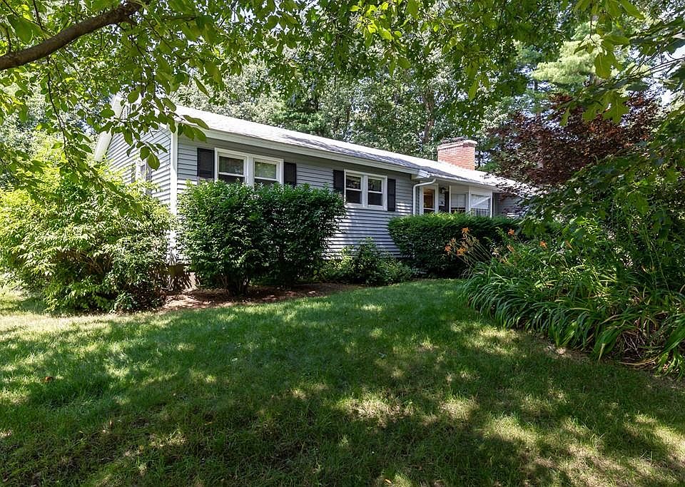Ranch in N. Chelmsford. Home offers 3 bedrooms, dining and kitchen area. Living room has beautiful hardwood floors with a wood fireplace. Large attached 3 season porch to the 1 car garage. Hardwood under flooring in dining area. New heating system. New roof and new siding. Huge lot with a large backyard. Partcially finished lower level. Close to shopping and Route 3.