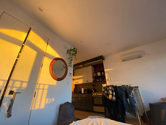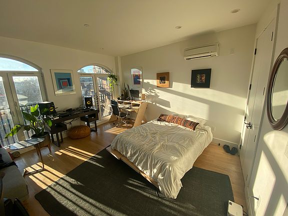 RENT STABILIZED, AND CURRENTLY THE MOST IN-DEMAND BUILDING IN BUSHWICK!! DON'T MISS OUT, THIS WILL GO FAST. Facing west, top floor, stunning sunsets!! APRIL-1 (not before or after) **Quick response, fast approval process. Email me (email only, no texts or calls** A fantastic opportunity for a LARGE, rent stabilized Studio apartment. Cozy, quiet, convenient. Large open area, Three giant floor to ceiling decorative windows flooding the apartment with tons of natural light. High ceilings, hardwood floors, a large bathroom, plenty of cabinet and closet space. This is a full amenity building (see list below). Nearby subway: Central Av(M), Myrtle Av (J, M). Amenities are included in the rent. Pets welcome. VIDEO OF UNIT AVAILABLE ON REQUEST This is by APPOINTMENT ONLY. **Unit is currently tenant occupied, please allow flexibility with viewing times** Central A/C Large Balcony High Ceilings Hardwood Floors Elevator Natural Light in Living Area Laundry in building Bike storage Storage Space Gym Lounge Private parking (Has extra fee) Outdoor Space (common) Roof access (common) Stainless Steel Appliances Dishwasher Stone countertops