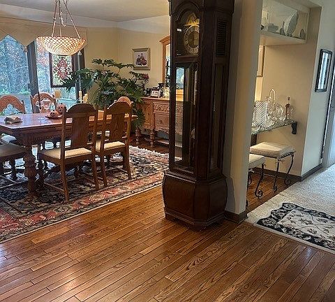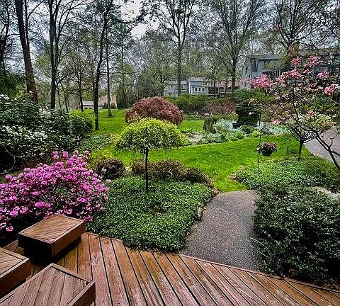One of a kind outstanding custom built contemporary located in the Village of Bradford woods. Nestled perfectly amongst the trees, this lot has the view of the community ponds and walking trails . It lives like a huge lot as the common owned property adjoins it yet the HOA maintains it! Designed to be different yet functional, this home boasts of tons of natural light with multiple skylights, long lengths of sliding doors and even a quarter wall of glass above the kitchen countertop which runs the length of the kitchen wall. Upstairs is also unique with cathedral ceilings, skylights and balcony nook extending across 2 bedrooms. Huge primary suite with sitting area, skylights and vaulted ceiling. On the lower level is the game room as well as add'l rooms to use as needed. A deck overlooking the woods runs the length of the home. In the spring, enjoy gorgeous gardens with flowing trees, also walking trails right beside the home -simply an unparalleled property. 4 BR 3.5 Baths