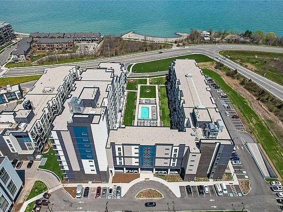 Discover the perfect blend of comfort, convenience, and charm in this bright 1-bedroom condo in the heart of Grimsby on the Lake. As soon as you walk through the doors at Aquazul, you will be impressed with the attention to detail and the luxury of the common spaces. Designed for those who value easy, low-maintenance living, this home boasts open-concept living spaces flooded with natural light, a well-appointed kitchen with ample storage, and a spacious bedroom that is perfect for relaxing after a busy day. Step outside your door and immerse yourself in all that Grimsby has to offer: leisurely strolls to local shops, trendy restaurants, scenic parks, and the sparkling Lake Ontario waterfront. Explore nearby trails, visit charming wineries, or simply enjoy quiet mornings on your balcony soaking in the peaceful surroundings. You will love the convenience of in-suite laundry, dedicated parking, and visitor parking. With access to building amenities like the heated salt water pool, games room, roof top patio, fitness area, bbq area, this condo is more than a home, its a gateway to a vibrant, active, and connected lifestyle. Live the life you've been dreaming of at 16 Concord Place; where comfort, convenience, and community come together. Perfect for first-time buyers, downsizers, or savvy investors.