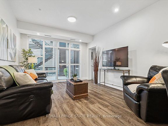 Welcome to Aquazul Waterfront Condominiums, where resort-style living meets lakeside tranquility! This bright and inviting main floor condo offers an open-concept layout with 2 bedrooms, a 3-piece ensuite privilege with walk-in shower, and many upgrades that elevate everyday living. Situated in the picturesque town of Grimsby-on-the-Lake, this unit is perfect for professionals, commuters, and those seeking a vibrant community with quick access to the QEW, boutique shops, restaurants, and waterfront trails. Step inside and enjoy the warm ambiance of the living room that flows into the stylish kitchen, complete with custom cabinetry, quartz countertops, stainless steel appliances, pantry roll-out drawers, and a breakfast bar. Recent updates include: brand new carpet in both bedrooms, bedroom enhancement with storage in spare bedroom, new kitchen and bathroom sinks and fixtures, an owned reverse osmosis system, 3" plantation shutters throughout, and a full-size washer and dryer. The main floor patio is a pet owners delight and ideal for entertainingplus, no more hauling groceries up the elevator! This desirable poolside unit offers convenient access to the outdoor BBQ area making everyday living effortless. Everyday living is effortless and convenient. At Aquazul, youll love the resort-style amenities: an outdoor pool with cabanas, a stylish party room, fitness center, theatre room, and of course, the breathtaking lakeside views. Dont miss your chance to own a slice of lakeside living in one of Grimsbys most desirable communities!
