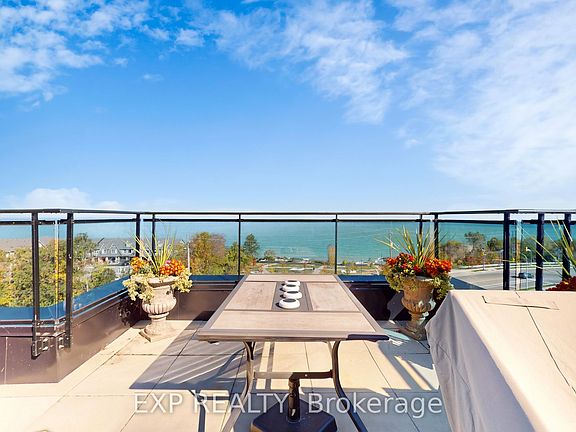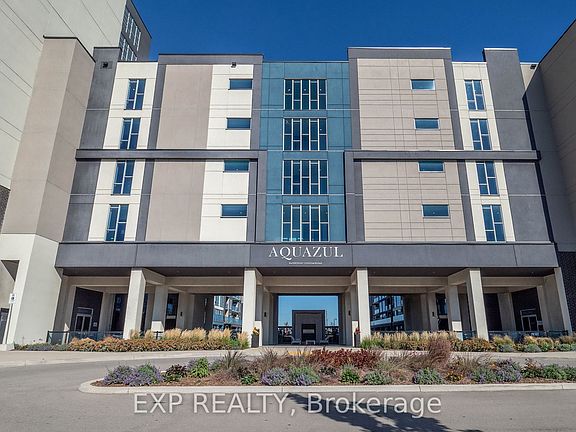 Welcome to AquaZul Waterfront Condos, resort-style living in Grimsby designed like a 5-star hotel. Suite 640 is 2 bedrooms and den, gold standard w/over $100K in upgrades. It has a 580sqft terrace overlooking Lake ON, 2 balconies, 10ft ceiling window walls, 3 parking spaces w/2 storage lockers. Luxurious primary bdrm faces lake w/ flr to ceiling windows & powered blinds w/2nd entrance to oversized terrace. Crown mouldings, spacious walk-in closet, fully upgraded lavish 4 piece ensuite incl. granite counter, Viking cabinets & Moen hrdwr, premium 2 flush toilet, deluxe tiles, whirlpool tub w/6 body jets, & glass shower w/4 body spray vertical spa. 2nd bdrm has private balcony w/composite decking & glass railings, next to sunlit den/office. The main bthrm is fully upgraded to incl. flr to ceiling premium tiles, Moen faucets, granite counter, Viking cabinets & vessel sink. Open concept masterpiece ktchn has 1st grade Frigidaire appliances, Sirius chimney fan, Moen double deep sink, Royal Plus cabinets w/LED lights, Manhattan bar sink in 10ft granite island w/D/W, titanium granite backsplash, crown moulding, flr to wall ivory polished tiles. Adjoining grand living room has 8ft wall fireplace for xtra heat, coffered ceilings, floating walnut shelving, ample pot lights & etched glass chandeliers. Driftwood oak engineered hardwood flrs compliment oversized window walled rm that leads to huge lakeview terrace. Accompanying dining rm has own balcony overlooking resort amenities: heated outdoor saltwater pool, 6 cabanas, 4 premium BBQs, outdoor seating w/wall fireplace. Suite incl. 2door laundry area w/oversized Electrolux W/D. Entrance & hallway has UPG tiles for easy cleaning. Resort bldg has 2 storey lobby, modern party rm, state of art fitness centre, contemporary billiards rm, lrg media rm. No detail left undone in suite 640 (2022 completion). Steps to 'Grimsby on the Lake' shops & eateries, beach blvd & park, QEW. Come see the beauty for yourself.