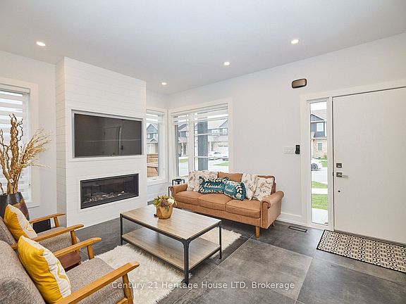 Stunning custom built home with high-end finishes throughout, featuring 4+1 Bedrooms and 3.5 Baths and conveniently located close to shopping, restaurants, Parks, walking trails and more. The main level features oversized tile flooring, a gorgeous kitchen with modern two tone cabinetry, large island with waterfall quartz counters, quartz backsplash, and pot lights throughout. Convenient entry from the garage to the mud room/main floor laundry room and 2pc bath. Glass doors from the kitchen/dining area lead to a large covered deck with exterior pot lighting, custom privacy wall, gas bbq hookup and vinyl decking. A custom floating staircase with glass railings and a stunning feature wall lead to the 2nd level. Second level features engineered hardwood flooring, 4 large bedrooms, a stunning 4pc bath with deep soaker tub, a master suite with walk in closet and 3pc ensuite with quartz counters and a custom glass and tile shower. The fully finished lower level features a rec room, additional bedroom w/large window, another 4pc bath, and a cold cellar. Other features include a concrete patio in addition to the deck, covered front porch, custom window coverings, custom vent covers to match flooring, fire sprinkler system, central vac & an on demand hot water system.
