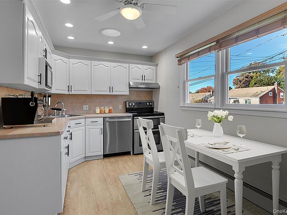 Beautifully maintained split-ranch in the Beverly Gardens section of Huntington Station. This move-in-ready home features 3 bedrooms and 1.5 baths. Enjoy a sun-filled living room and an eat-in kitchen with expansive refreshed white cabinetry and stainless-steel appliances. A cozy family room with a potbelly stove offers warmth and charm, opening to a private patio and fenced backyardideal for relaxing or entertaining. Freshly painted interiors, gleaming recently refinished hardwood floors, and new central air provide year-round comfort. Additional updates include a 4-year-old boiler, vinyl siding, Anderson windows, and a roof all approximately 10 years young. The freshly painted basement, 200-amp electric service, attached 1-car garage, in-ground sprinklers, and laundry/utility room add convenience. Just minutes to shopping, highways, LIRR, and vibrant Huntington Village with its dining, shops, and entertainment. Located in the South Huntington School District. Photos are virtually staged with furniture.