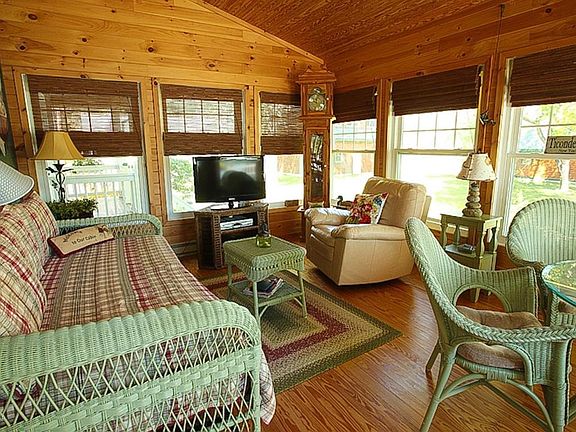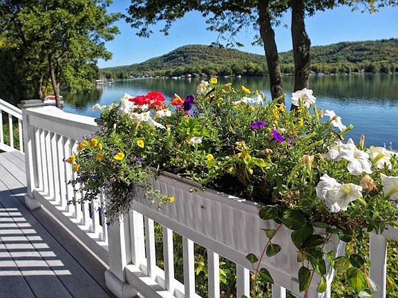 Spectacular lakefront home in need of nothing. The pictures tell the story! Custom kitchen (lakeviews) with open floor plan to dining area and living room/fireplace. Beautiful enclosed porch! In deck hot tub. Full lakefront deck. Town sewer/water. Master bedroom either on first or second floor. The second floor has large closet space, make up station, lakeviews and deck.