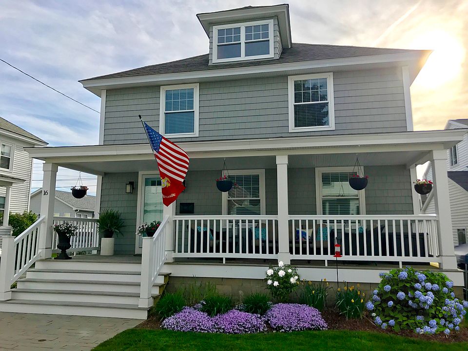 MORE THAN A BEACH COTTAGE -$349900 Gleaming updated home 800 feet from the ocean at Hampton Beach on a quiet upscale dead end street with view of the marsh from the lg covered porch. Fenced in back yard with large deck, outside shower and 220 SF bunk house with kitchenette and 3/4 bath. Off street parking for 4 cars on long driveway. Eat-in kitchen, formal dining room, large living room, FP and 1/2 bath on 1st floor. 4BR and full bath on second floor. 4086176
