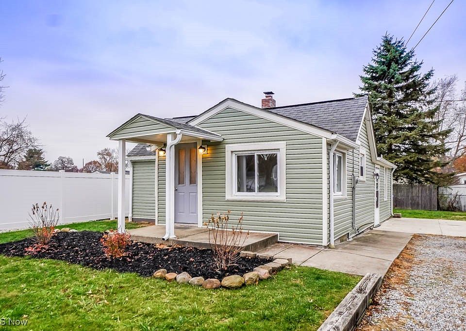 Move right in to this refreshed 2 bedroom, 1 bath ranch! This home has received numerous recent updates, including fresh interior paint, newer siding, downspouts, roof, chimney cap, concrete parking area, a new sewer line, furnace, hot water tank, and several updated fixtures throughout. Both bedrooms offer laminate flooring and single closets, and the full bath includes LVP flooring, a walk in shower, and vanity lighting. The partial unfinished basement provides storage space, washer/dryer hookups, a sump pump, and a well pump. Outside, enjoy a partially fenced yard for added privacy. A wonderful opportunity to own a well maintained, move-in ready home!
