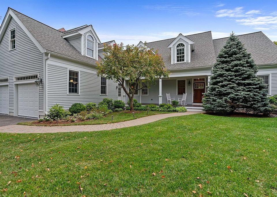 South Natick. Hidden gem on tranquil private way, graciously sited among 17 homes with lush grounds. This elegant residence has a welcoming front porch overlooking private front courtyard of lovely plantings and a private rear deck overlooking town trails and forest. This spacious 8 room sophisticated home has distinctive architectural details including pillars, arches, crown moldings, tall ceilings, and transom windows. Updated throughout with unusually large eat-in kitchen and adjacent den with custom built-ins and sitting area. Dining room with French doors to the deck and access to the screened porch. Wood or gas fireplace in the living room. First floor primary suite with enviable walk-in closet. Three additional bedrooms and two baths on the second floor with versatile loft, family room or office space. Abundant storage, well appointed wine cellar and large walk out basement. Very short distance from South Natick Center, Memorial School, commuter rail and near Wellesley.