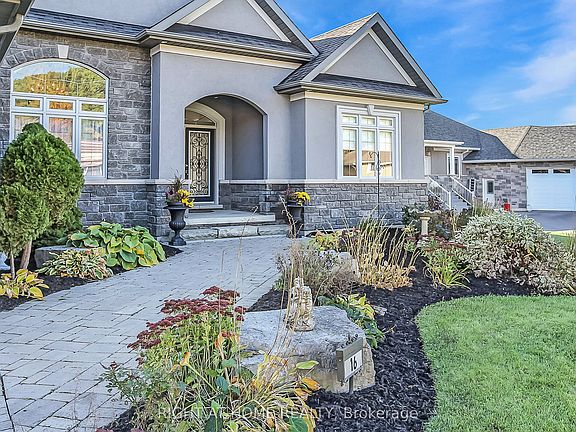 Welcome to this Elegant Ranch Bungalow **This stunning stone & stucco ranch bungalow sits on a beautifully landscaped estate lot in sought-after Wasaga Sands Estates. With over 3,800 sq ft of finished living space, this 3+2 bedroom, 3-bathroom home has been lovingly maintained by the original owners and offers a perfect blend of elegance, comfort, and functionality. The main floor features an open-concept layout with crown molding, recessed lighting, hardwood floors & upgraded broadloom . The formal dining room impresses with a soaring 12FT ceiling, while the spacious maple kitchen is a chefs delight with a full eat-in area, new high-end stainless steel appliances and walkout to the two-tier deck. A convenient main floor laundry room with garage access adds everyday practicality. The primary suite includes a coffered ceiling w/soft lighting, walk-in closet, and a luxurious 5-piece ensuite. Two additional bedrooms and a full bath complete the main level.The fully finished lower level offers incredible versatility, with two bedrooms/den, a full bath, and a walk-up access to garage - ideal for extended family or guests. Additional highlights include a triple heated garage with remote garage door opener, gas BBQ, inground sprinkler system, and ample driveway parking. Located just minutes from sandy beaches, ski hills, and year-round recreation, with all amenities within walking distance, this home is ideal for families or retirees alike. Immediate possession available **furniture is negotiable ** Just move in and start enjoying everything this incredible home & neighborhood have to offer.