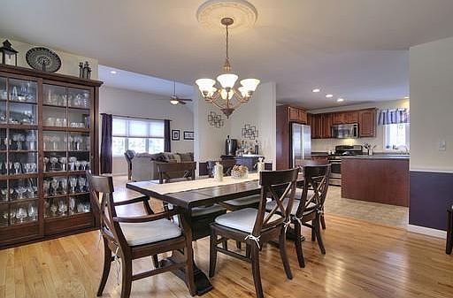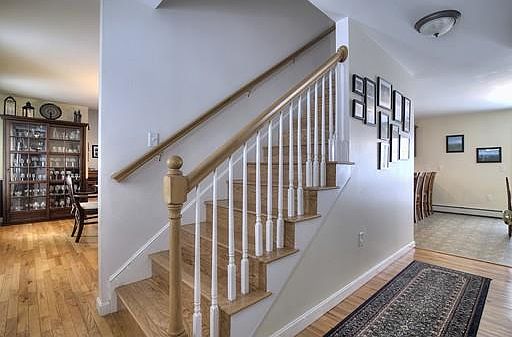 This 4 bedroom, spacious Colonial is located in the beautiful and desirable Tuck Woods subdivision. This home is designed for both entertaining and a comfortable lifestyle that is both open and functional. The entire home has hardwood flooring with the exception of the kitchen, baths & the finished third floor. The large eat-in kitchen is nicely equipped with stainless steel appliances including a gas range and cherry cabinets. There is also a formal dining room for those special occasions. The comfortable family room has vaulted ceilings, ceiling fan and a gas fireplace. The first floor also has a formal living room that could be used as an office or a playroom. A half bath is conveniently located on the first floor. The second floor has two spacious bedrooms plus bath and a Master with bath. The third floor is now being used as a den and a fourth bedroom. All this plus central air, cul-de-sac location, a farmer's porch and two car garage. Nicely landscaped on 2.12 acres.