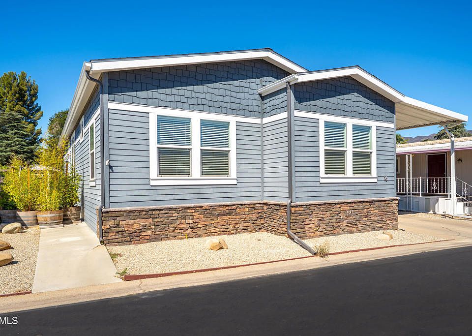This beautifully maintained custom-built 2-bedroom + office (or optional 3rd bedroom) manufactured home is located in a desirable adult community in Ojai. Situated on an exterior lot with no neighbors behind you, the property offers added privacy and mountain views.Step inside to find an open floor plan with plenty of natural light, a generous kitchen with a central island, farmhouse sink and custom cabinetry. The flexible layout includes a spacious living area with a fireplace, an open dining room, two comfortable bedrooms, and an additional office/den that can easily serve as a third bedroom if desired. The primary suite is well appointed with a separate shower, soaking tub and a walk in closet.Enjoy the convenience of low-maintenance living in a tranquil setting with a community pool, spa, clubhouse and gym. Centrally located minutes to downtown, the lake and adjacent to the Ventura River preserve with scenic trails to explore.
