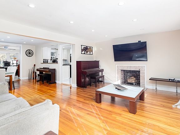 Stunning expanded Cape in a desirable family neighborhood! This sun-filled home offers an open floor plan with gleaming hardwoods, elegant living room with fireplace, sunroom, and updated kitchen with granite counters and stainless steel appliances. Three bedrooms upstairs with an updated bath, plus two versatile first-floor rooms perfect for bedroom, office, or den.Enjoy the new deck, patio with pergola, and beautifully landscaped level yard with sprinklers—ideal for entertaining. Many updates include newer heating system, mini-split AC/heat pumps, tankless water heater, new windows/doors, and owned solar panels with EV charger. Garage, large basement storage, and easy commuter location near the high school.Welcome home for the holidays!